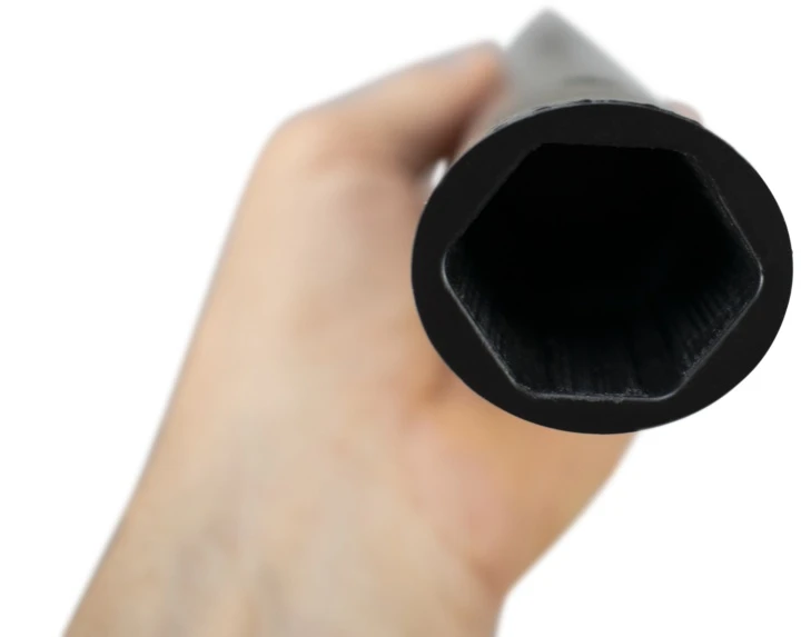 Die Teilung ist als Sechskant geformt, die mit einem Federstecker gesichert ist. Einfach und langlebig. Aufgrund des Sechsecks entsteht im Laufe der Zeit kein Spiel.