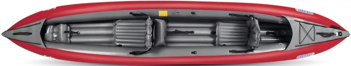 Im Lieferumfang sind verstellbare Fußstützen vorne und hinten, bequemer Sitz mit Rückenlehne, elastisches Verspannung zur Gepäckbefestigung, Griffe an Bug und Heck, Halterung für Richtungsflosse, Richtungsflosse, Reparatur-Set und ein wasserdichter Transportsack 80l enthalten.