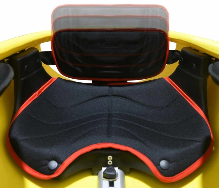 Bei Seekajaks muss der Sitz etwas nach vorne geschoben werden damit die Lehne passt.