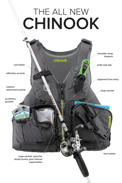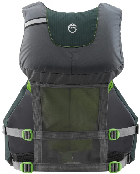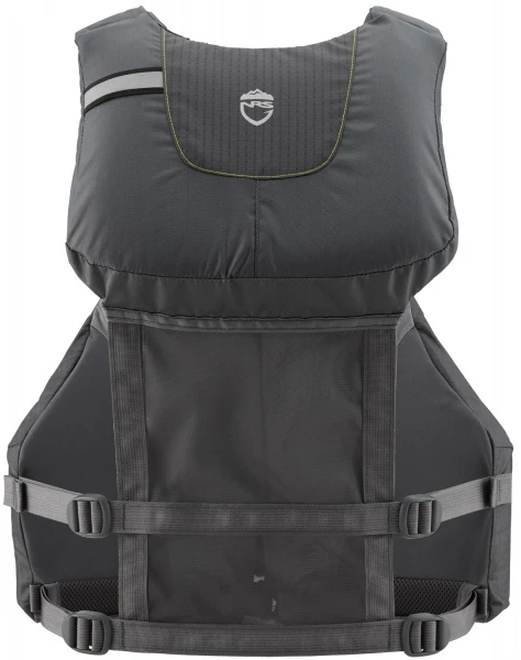 Einfacher Einstieg dank Front RV und gute Passform durch insgesamt acht Einstellgurte. Das untere Rückenteil ist aus Netzmaterial für bessere Belüftung und Sitzkomfort bei Booten mit hoher Lehne. PlushFit™ Schaumstoff und das High-Back-Design ergeben zusammen eine äußerst bequeme Weste für jede Art von Boot- oder Kajaksitz.
