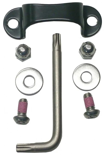Edelstahlbügel kompl. mit Spezialschrauben, dazu passendem Schlüssel und Hutmuttern für die Selbstmontage am Boot.